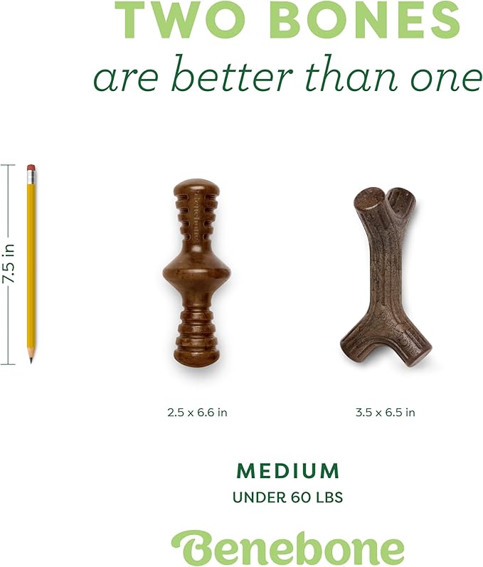 - EASY TO PICK UP AND CHEW – Our Maplestick and Zaggler are uniquely shaped for a paw-friendly grip so your pup can quickly grab them and get a good chew going. Think about it: dogs don’t have thumbs. DURABLE, LONG-LASTING – Benebones are tougher than real bones and last for weeks.